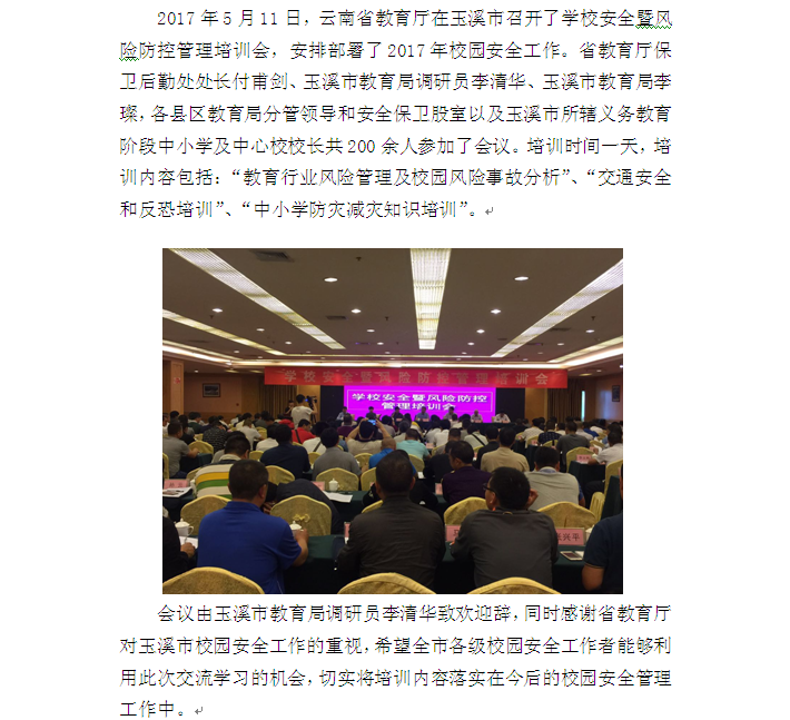 2017年玉溪市學(xué)校安全暨風(fēng)險防控管理培訓(xùn)會