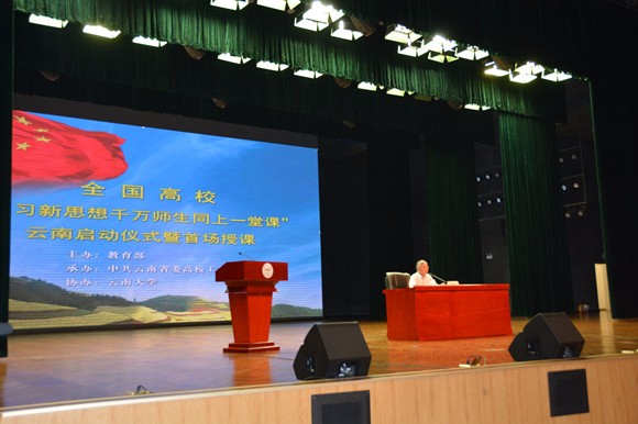 6月6日,全國高校"學(xué)習(xí)新思想千萬師生同上一堂課"云南啟動(dòng)儀式暨首場授課在云南大學(xué)呈貢校區(qū)舉行。教育部督導(dǎo)聯(lián)絡(luò)員丁浩到現(xiàn)場指導(dǎo)工作。云南大學(xué)黨委副書記張昌山教授,中央馬克思主義理論研究和建設(shè)工程首席專家、云南民族大學(xué)教授張建國分別在啟動(dòng)儀式上授課。